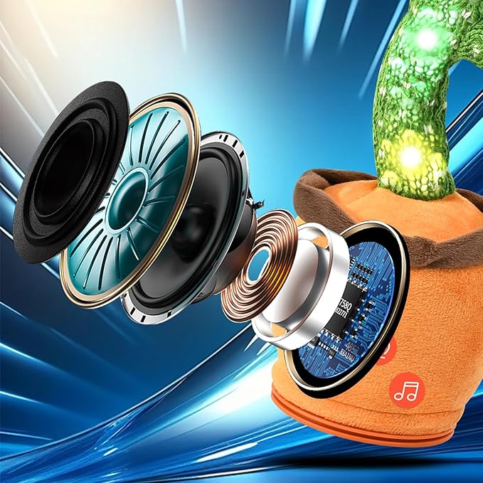 - RECHARGABLE TALKING CACTUS TOY : The dancing talking cactus toy features 120 English songs and dances along to the music. This plush cactus toy can also record and repeat what you say in a humorous and entertaining way, creating a lively atmosphere for family enjoyment.