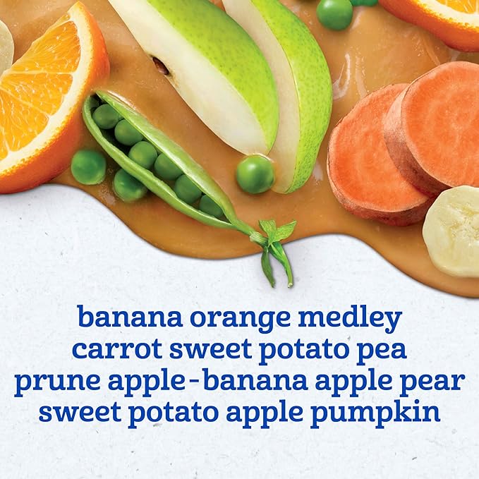 - VARIETY PACK: This nutritious baby food variety pack comes with 5 fruit and veggie purees: banana apple pear, banana orange medley, carrot sweet potato pea, sweet potato apple pumpkin, prune apple