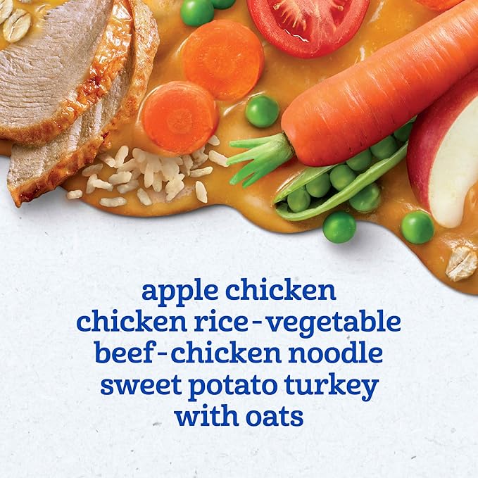 - VARIETY PACK: This baby food variety pack comes with 5 purees: apple chicken, sweet potato turkey with oats, chicken rice, vegetable beef, chicken noodle