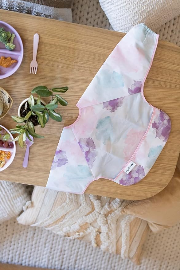 Tiny Twinkle Mess Proof Baby Bib,Waterproof Smock Baby Bib for Eating,Machine Washable Long Sleeve Bib,Baby Led Weaning,Toddler Bib (Cotton Candy, Small 6-24 Months)