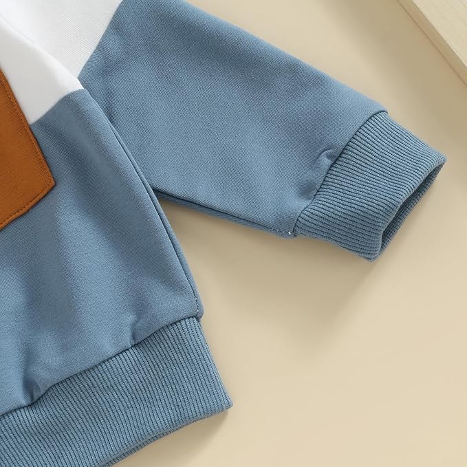 - Design: Toddler boys casual 2pcs outfit sets, color block long sleeve crew neck pocket pullover sweatshirt jumper tops, drawstring casual long pants joggers, toddler baby boy sweatsuit, cute toddler boy fall clothes.