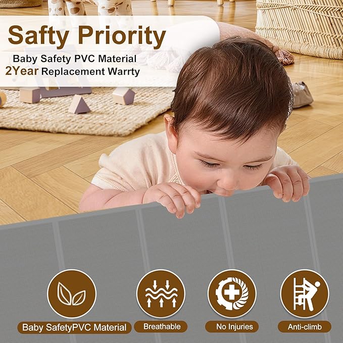 - 【SUPER SAFETY】Miumoon baby gate utilizes innovative safety materials, giving moms peace of mind when using it for their babies. The mesh material is softer for babies, reducing the chances of injury while they play. Miumoon retractable gate has No Bottom Bar - so no trip hazard.