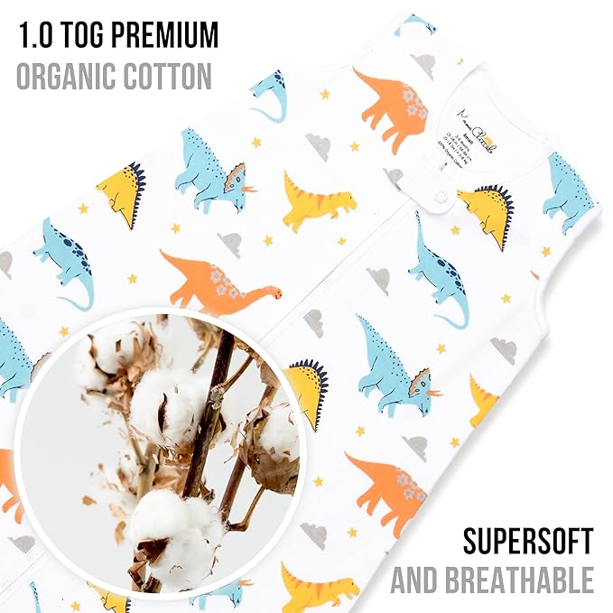 - 【DOUBLE LAYER 1.0 TOG 100% Organic Cotton】— This Baby Sleeping Bag is made of double layer premium organic cotton with a TOG rating of 1.0, which is most suitable for moderate seasons or climates, can help your baby get a peaceful, long sleep year-round - being not too hot or cold. The organic cotton interlock minimizes overheating and keeps your baby warm and comfortable.