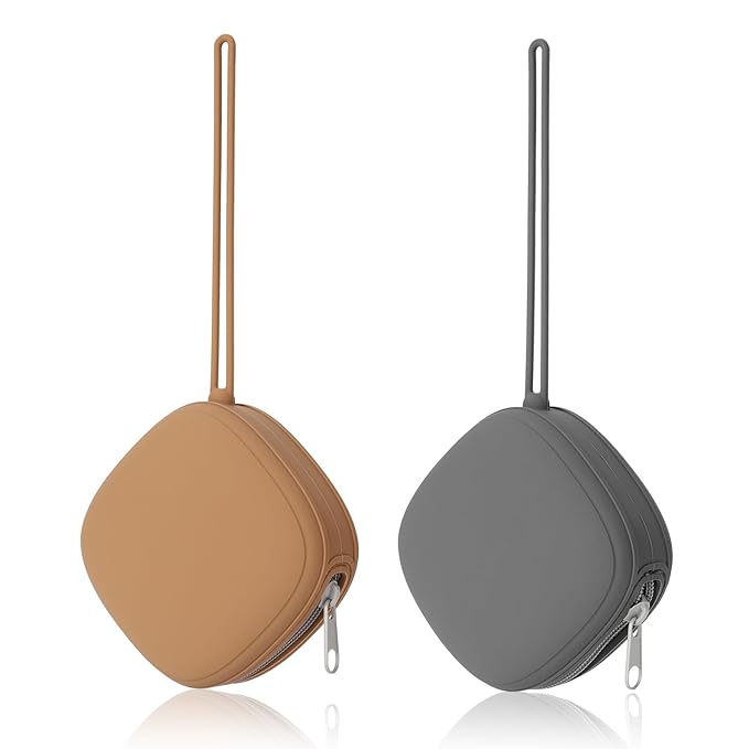 Silicone Pacifier Holder Case, Baby Binky Silicone Cover Pouch, Silicone Pacifier Storage Case for Diaper Bag, 2 Pack (Clay, Dark Grey)