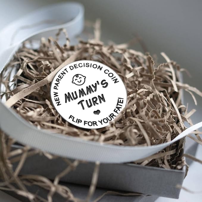 - FUNNY DECISION :To take care of a baby and bring some fun for a tired time, 2 sides of this pregnancy gifts coin stand by dad and mom. Turn the new parents gifts coin flips to decide whose turn to change a diaper or feed your baby at the midnight.