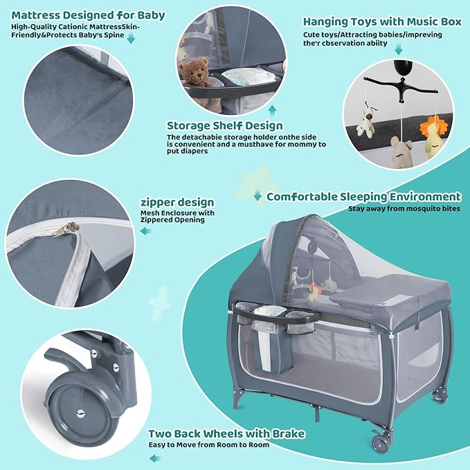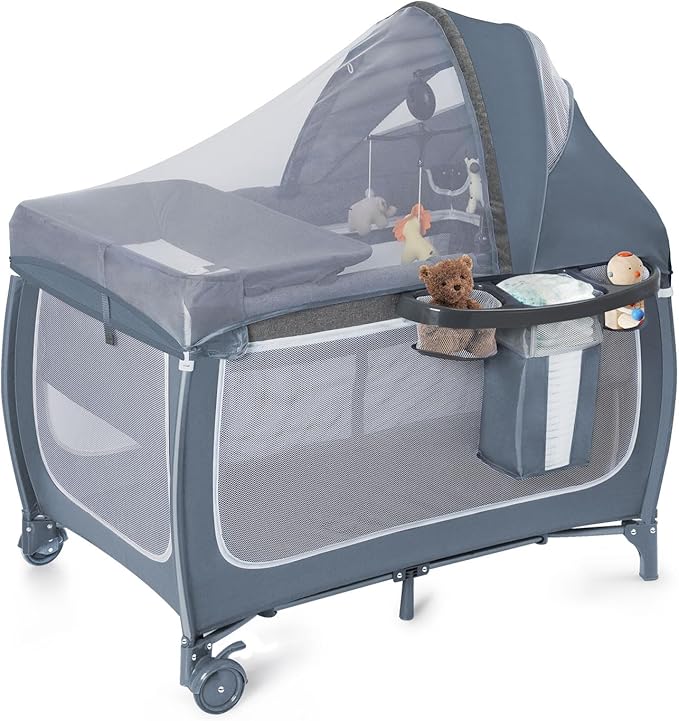 - 【BREATHABLE MESH CANOPY】Designed with your baby's comfort and safety in mind. Featuring a breathable mesh canopy for good air circulation and dust prevention, ensuring a protective environment. Plus, added mosquito net protection keeps pesky bugs away. With convenient side zipper doors, your child can easily enter and exit the playard. Create a comfortable sleeping environment for your baby, allowing them to rest peacefully and safely.