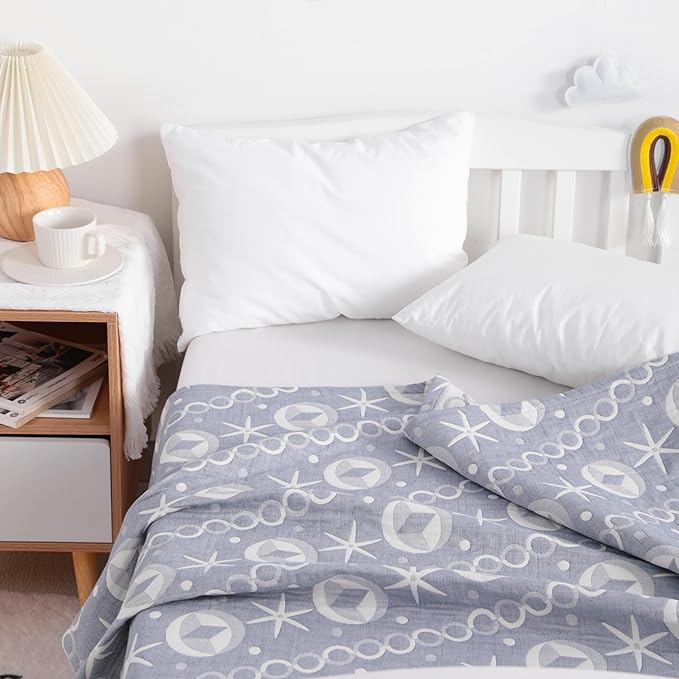 NTBAY 3 Layer Oversized Muslin Cotton Toddler Blanket, 45x60 Inches Jacquard Reversible Nursery Bed Blanket, Super Soft and Thermal Crib Blanket for All Seasons, Baby Gift, 45"x60", Blue Starfish