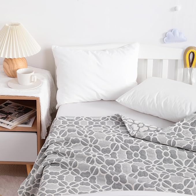 NTBAY 3 Layer Toddler Blanket, Muslin Cotton Jacquard Bed Blankets, Lightweight Thermal Baby Blanket, Super Soft and Warm Crib Blanket for All Seasons, Decoration Gift, 30"x40", Grey Clover