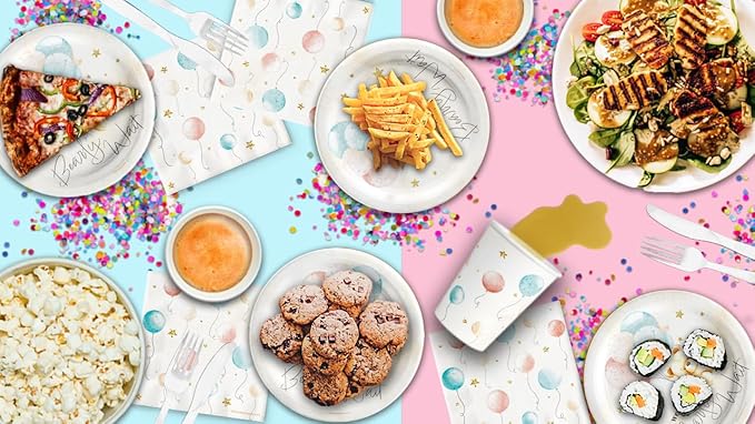 - MORE TIME TO ENJOY – Our party tableware can be arranged creatively on your cake table to enhance your party decorations and make a stunning photo backdrop. Tableware is disposable for easy clean up. When the party ends simply dispose of everything and then relax.