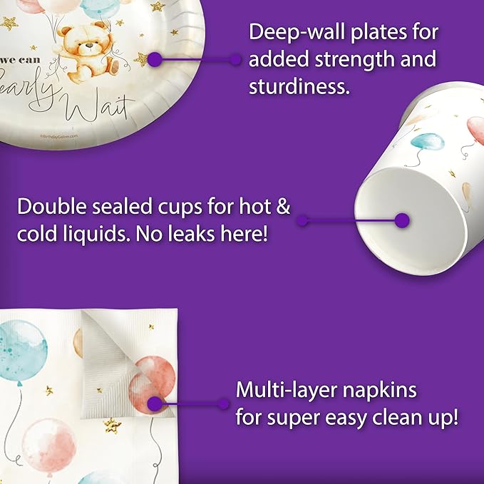- PREMIUM DESIGN - Our Teddy Bear Party Supplies are suitable for girl’s and boy’s birthday parties, holiday celebrations with your family and friends, special events or for just fun-filled daily meals, snacks, and desserts with picnics and cookouts. Shrieks of joy will be your reward when you use these fun and unique party tableware sets.