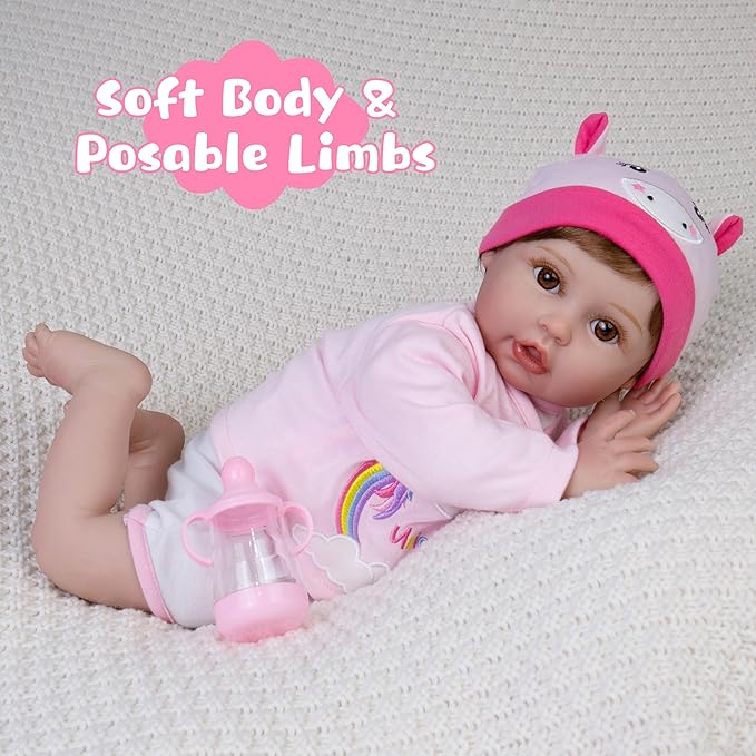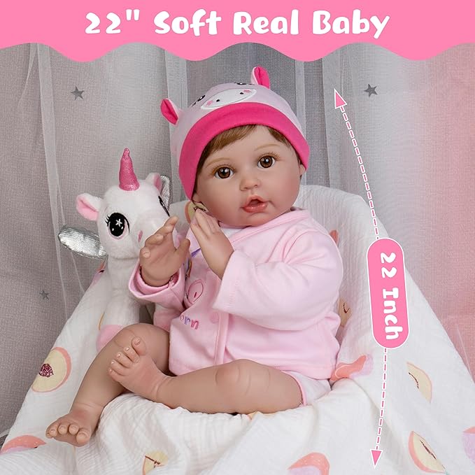 Lifelike Reborn Baby Dolls, 22-Inch Soft Cloth Body Realistic Baby Dolls with Clothes and Toy Accessories - Birthday Gift for Kids 3+