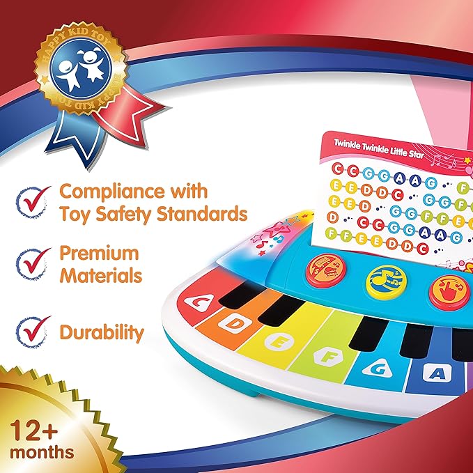 - 【MAGIC TOUCH PIANO】Feature vibrantly colored piano with touch sensor and 6 sheets of music with 12 nursery songs. Include volume control to match your play environment.