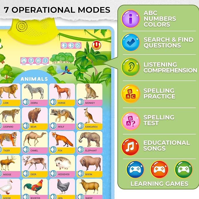 - HIGH-QUALITY ALPHABET CHART: Our musical learning toys for 3 year olds are made from totally safe first-rate materials; Our educational posters for toddlers saves your space; All you need is just easily hang this interactive poster on a wall or doors