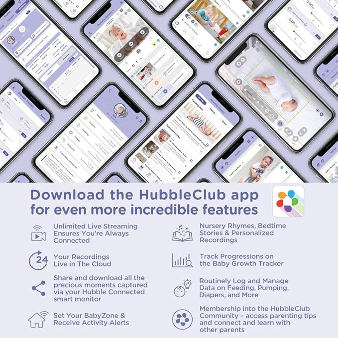 - Double the Convenience: View your baby's live stream in the way that suits you best by using the 5 inch touchscreen parent unit or the HubbleClub app on your smart device