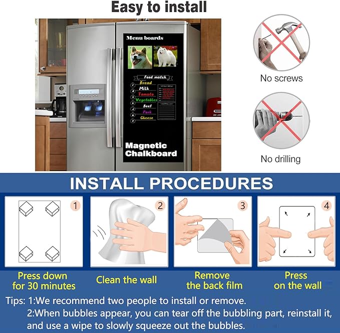 - DIY chalkboard wall: Backing paper printed with grid lines for guiding straight cuts. Precisely cut the magnetic blackboard into any size you want. Can be used as a memory photo wall, education wall, wedding signs, classroom presentation, chalkboard for kitchen, magnet display board for wall,magnetic chalkboard for fridge,office magnetic chalkboard for wall, magnetic wall playroom and making chalkboard calendars