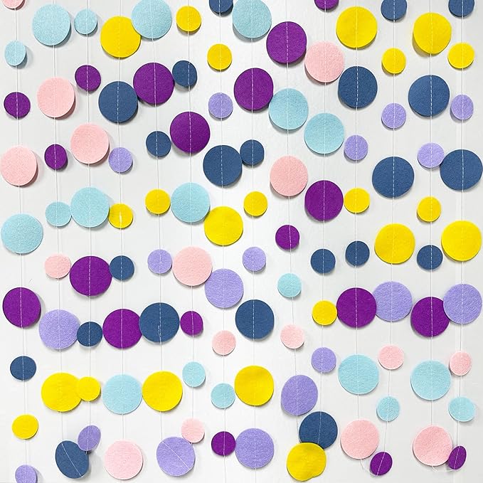 - ENVIRONMENTAL MATERIAL-Our navy blue yellow pink purple color dot garland are made of high quality felt,Soft and safe material.carefully hand-made and machine-sewn together with thread.durable and reusable.