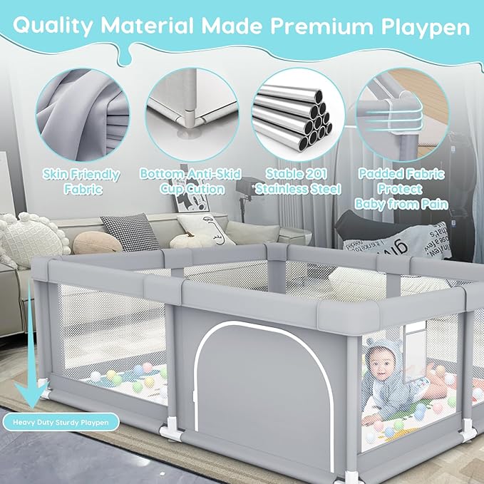 - [PARENT'S NICE HELPER] Our baby playpens can help children effectively explore the perceived world, play and learn to move in their own world, keeping them from getting lost or exposed to dangerous areas. Mothers can free their hands to do their own things, It's perfect for busy parents who need a safe place to entertain their children while they work or relax.