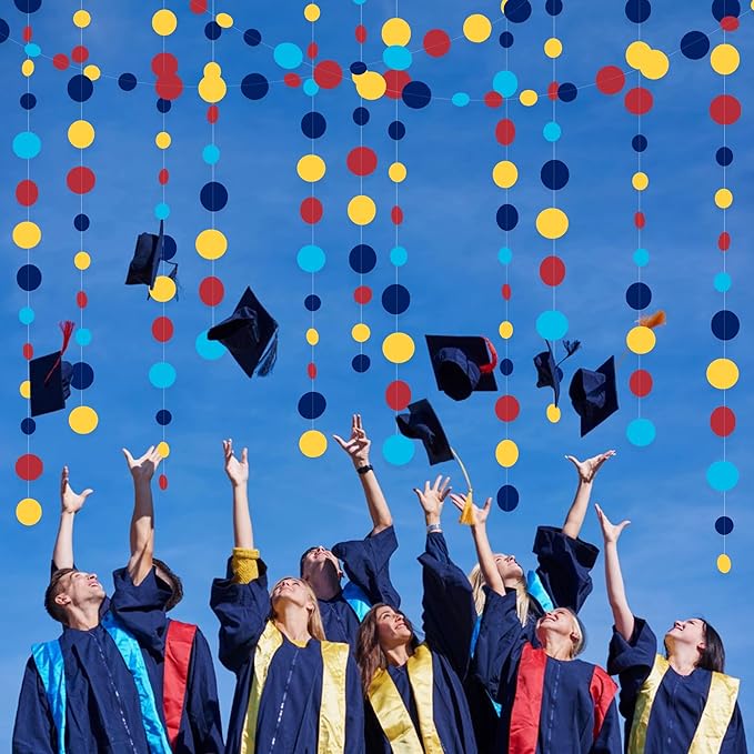 Red Blue Yellow Party Decorations Circle Dots Garland Hanging Paper Polka Dot Streamer for Carnival Circus Clown Fiesta Festivals Birthday Wedding Bridal Shower Wedding Baby Shower Party Supplies