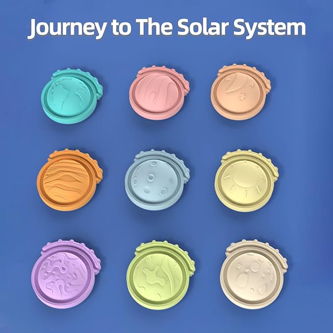 - Intellectual Development - The spinners for babies include 9 bright color bubbles.The two sides of bubbles have different numbers and planet graphics, which can help babies learn to count and recognize various planet graphics.
