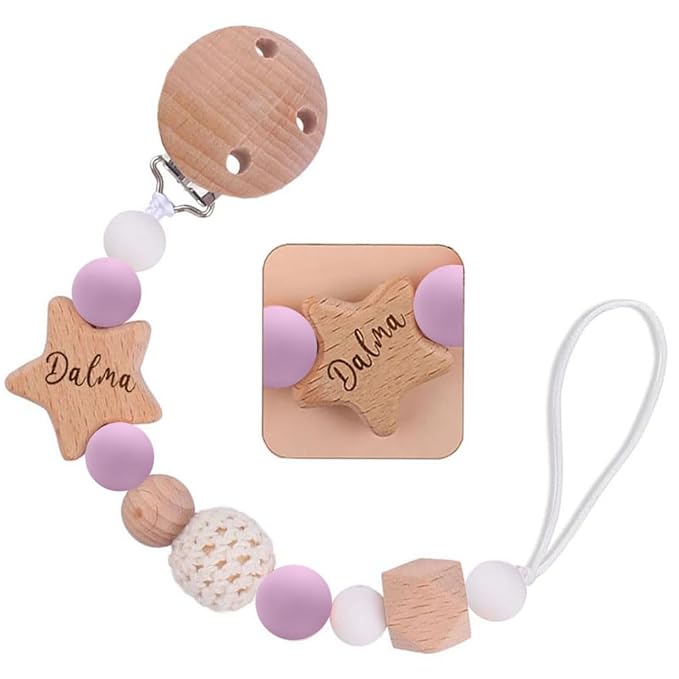 - Our personalized wood pacifier clip is the perfect accessory. It can be coordinated with different colors and patterns of baby clothes, making your baby stand out in style.