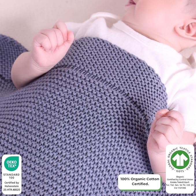 - [100% ORGANIC COTTON BABY BLANKET]: Made from GOTS-certified organic cotton, this breathable, hypoallergenic blanket ensures your baby’s delicate skin is safe. Designed with a timeless knit pattern, it’s soft, lightweight, and perfect for newborns and toddlers. Use it as a swaddle, crib blanket, stroller cover, or for tummy time. Highly praised by parents for its durability, this blanket retains its softness after multiple washes. Ideal for sensitive skin and eco-conscious families.
