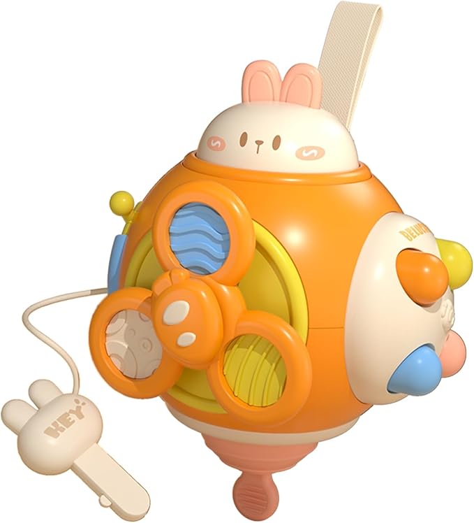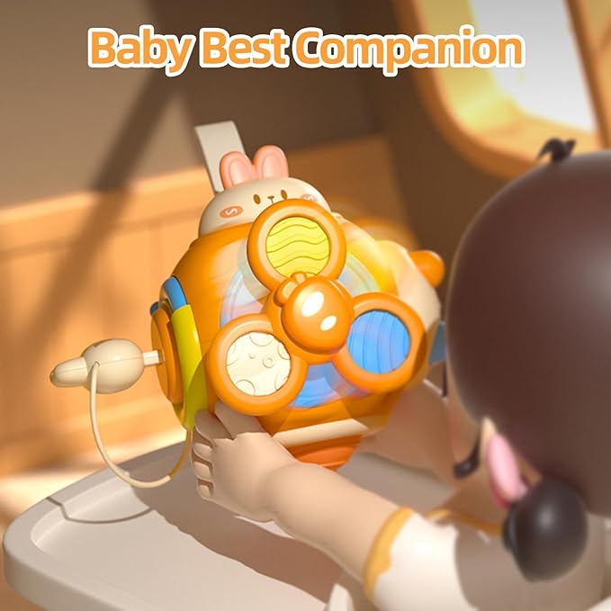 - Multifunctional Activities Busy Cube - The rabbit theme design toy combin with 6 different color parts, 6 way to play with spinner, teether, lock and key, BB squeaker, press button, spin toy.