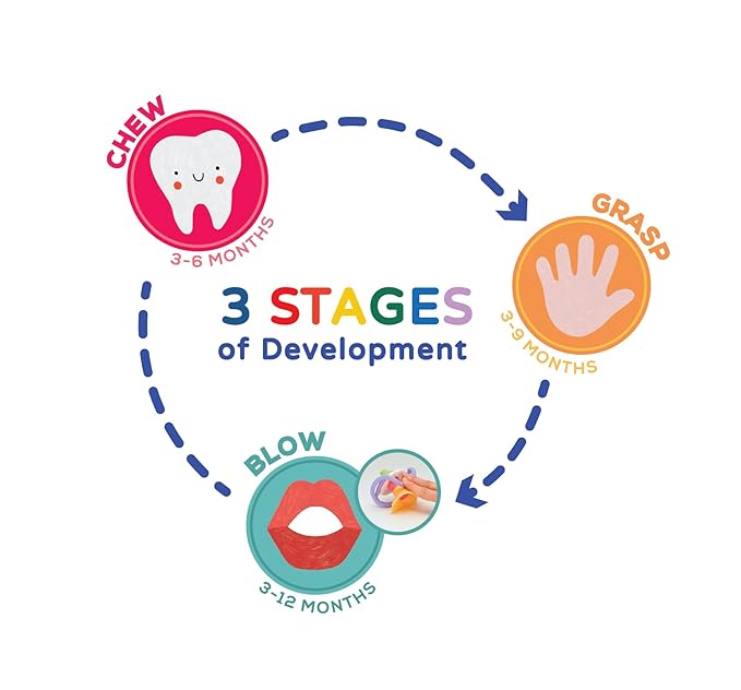 - šINFANT DEVELOPMENT: The cheerful colors encourage tactile exploration, helping babies to develop their sense of touch and feel. The blowing and sucking action of the Flower Whistle works to encourage the use of oral muscles that are critical for language development!