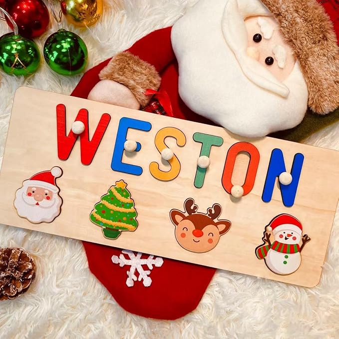 Custom Name Puzzles for Toddlers 1-3, Wooden Baby Name Puzzle for Kids Personalized Baby Gifts for Boys Girls, Toddler Christmas First Birthday Gifts, Baby Toys for 1-3 Year Old