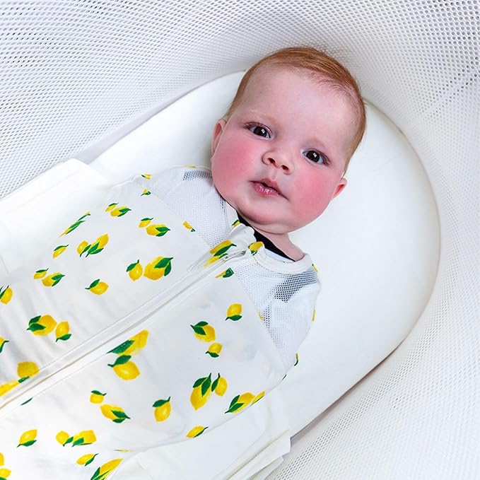 Happiest Baby SNOO Sleep Sack - 100% Organic Cotton Baby Swaddle Blanket - Doctor Designed Promotes Healthy Hip Development (Ivory Lemons, X-Large)