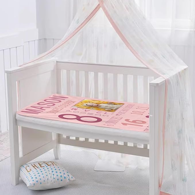Personalized Baby Milestone Photo Blanket, Custom Name Blanket Toddler Baby Boys Girls Soft Flannel Swaddling Blankets Customized Memorial Gift from Nana Grandma Infant Newborn