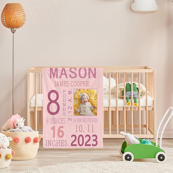 - β¨β¨ PERSONALIZED NEWBORN BLANKETS: Creative personalized name designs and available in a variety of colors. Blanket with elegant and unique design to freshen up a room.Using high-quality printing technology to keep the pattern clear , color bright, provide you with beautiful visual enjoyment.