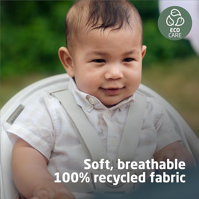 - FEATURING ECOCARE This high chair for babies and toddlers features our new premium, future-friendly, 100%-recycled fabric made from plastic bottles. The high-quality yarn produced is soft, comfortable, and breathable––perfect for your little one.