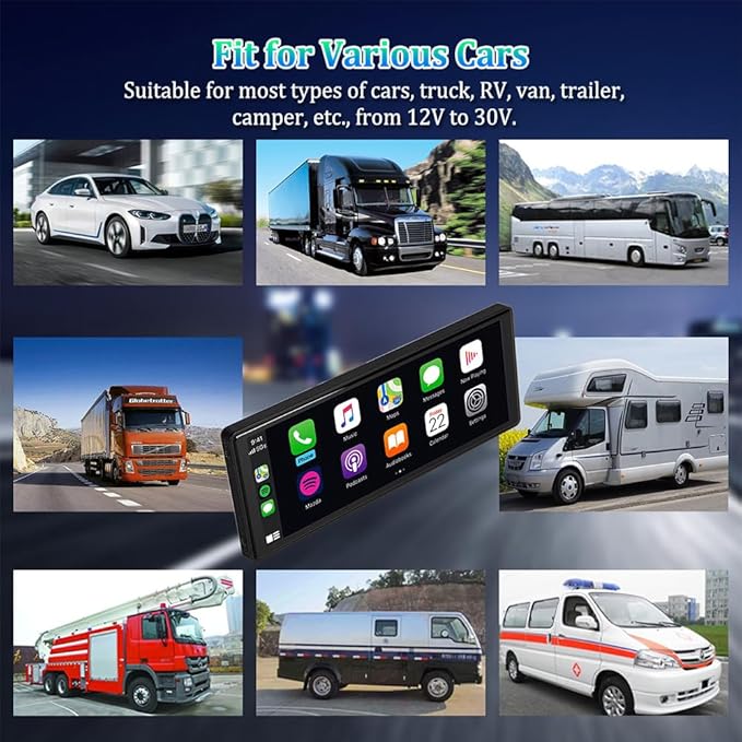 - 【10.26 Inch Touchscreen and Two Host Brackets】:The car DVR has a 10.26 inch HD touchscreen, with 480 * 1280 resolution. Provide clear visual effects when viewing map navigation and video playback. The car play display screen with the rotatable suction cup mount and adjustable height self-adhesive vertical bracket secures your dashboard console or windshield and can be easily removed and stored