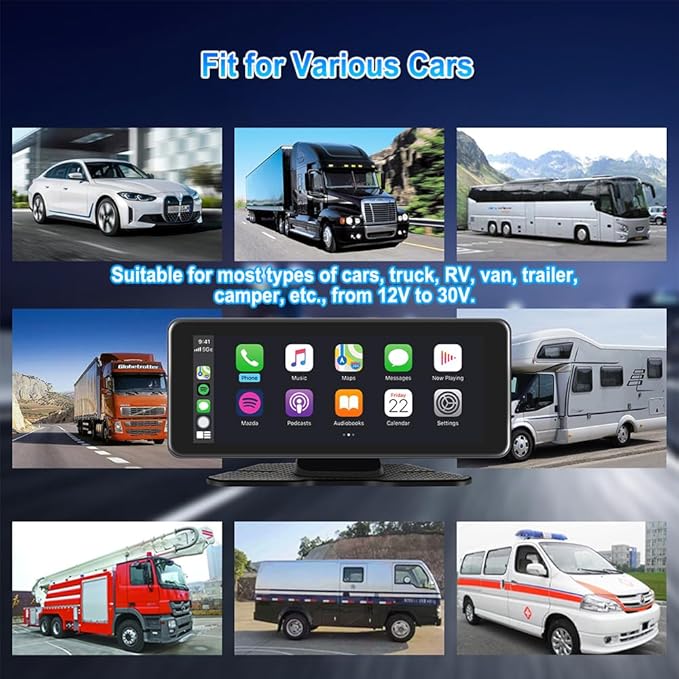 - 【Wireless Apple Carplay & Android Auto】:The portable car stereo receiver supports Carplay & Android Auto. You can connect the phone to the display via Bluetooth or WiFi, and then use the projection function to synchronously display the phone's maps, music, calls, messages and other app. You can also use the mobile app "Roadcam" to connect to the WiFi module of the recorder and view recorded videos in real-time.