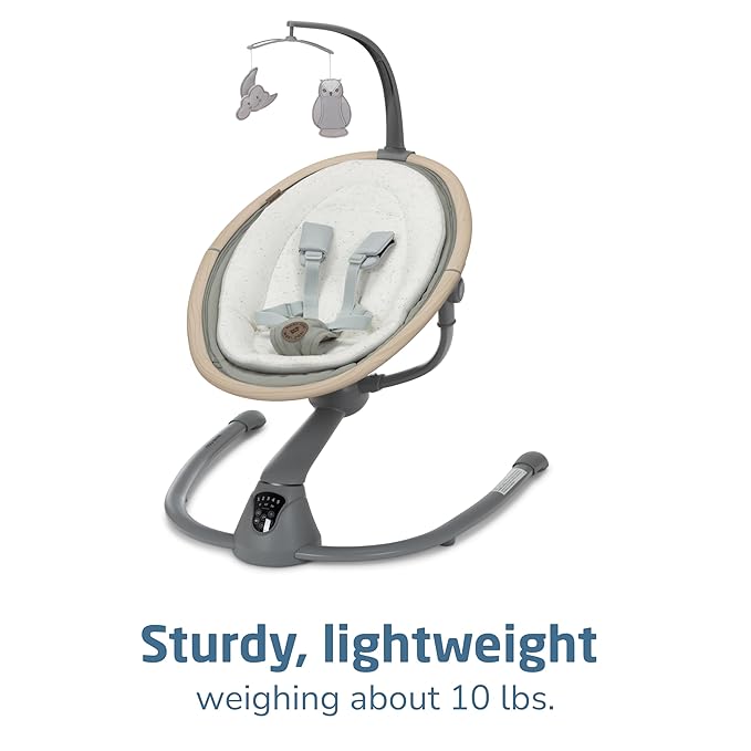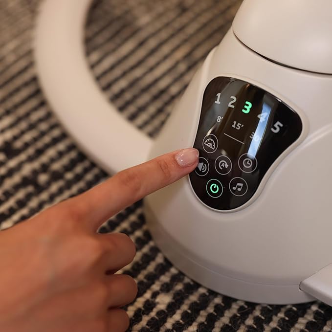 - SET THE MOOD WITH THE TIP OF YOUR FINGER: Easily customize the compact baby swing's settings with the smart built-in touch screen panel, selecting from 5 swing speeds and 12 melodies and nature sounds.