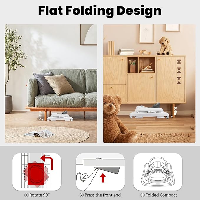 - 【Easy to Assemble & Foldable】: The foldable baby walker is easy to assemble, you can fold the baby walker with wheels and seat baby in just a few steps and walker for baby girl can be stored under bed or sofa without taking up too much space. The compact and folding design makes this portable adjustable baby walker easy to carry out anytime and anywhere