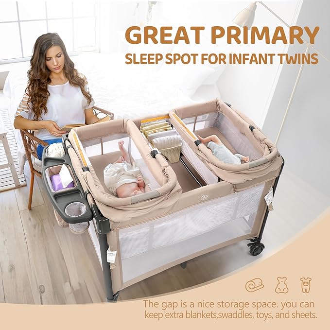 - Convenience for Parent: Our twin bassinet comes with two removable Rock-A-Bye Portable Bassinets, which can be used indoors or outdoors. Each bassinet provides a cozy and safe sleeping space for your little ones. Parents can easily transport the bassinet wherever they go.
