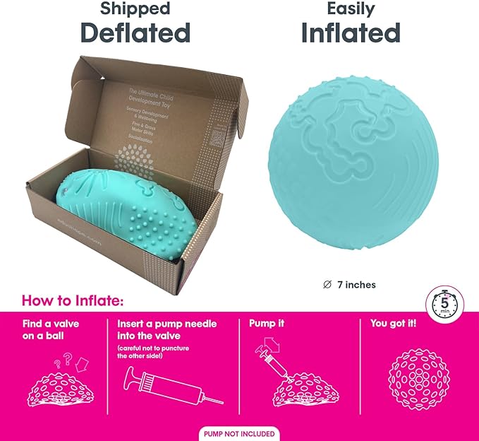 - WHAT'S INSIDE: A set includes one 7" Light Blue - Texture-iffic Deflated sensory ball for toddlers 1-3. Our baby development balls come deflated but can be easily inflated via a built-in valve. Recommended for kids aged 6 months and up!