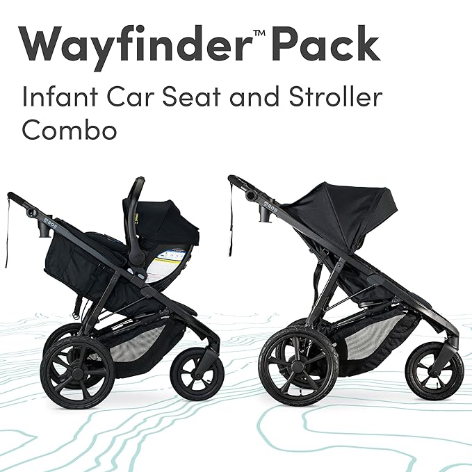 - BOB GEAR PACK: BOB Gear Wayfinder Baby Travel System infant car seat and stroller combo includes the Wayfinder jogging stroller, Champ infant car seat with Wilder car seat base, adult stroller cup holder, and infant car seat adapters