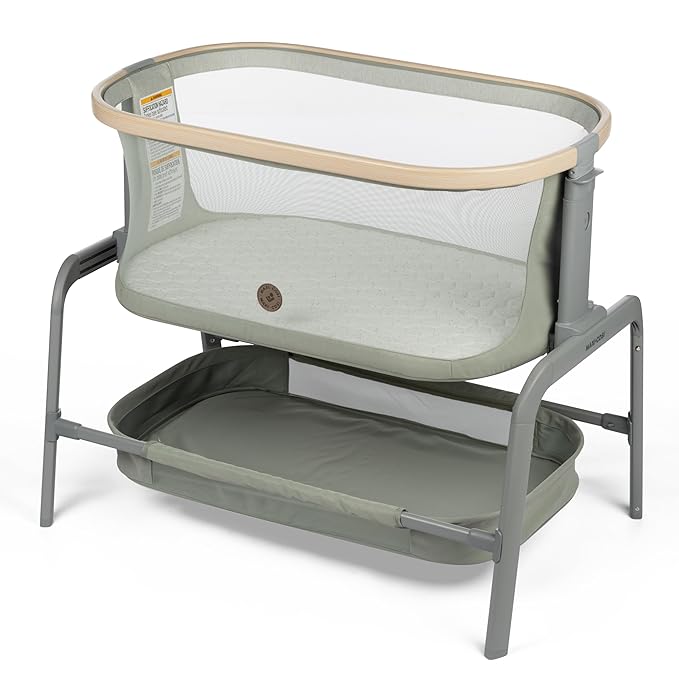 Maxi-Cosi Iora Baby Bassinets Bedside Sleeper, Portable Bassinet, Infant Bedside Sleeper Crib, Height Adjustable, Breathable Mesh, Large Storage Basket, Classic Green