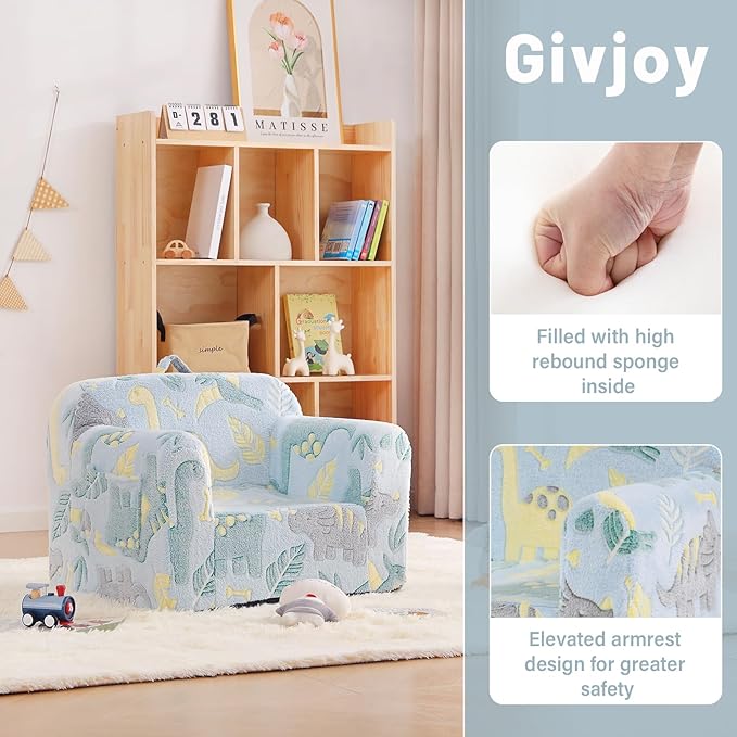 Toddler Chair Plush Kids Couch, Comfy Glow in The Dark Armchair with Removable and Washable Cover Carrying Handle Kids Sofa, Convertible Reading Chair Toddler Couch for Girls and Boys