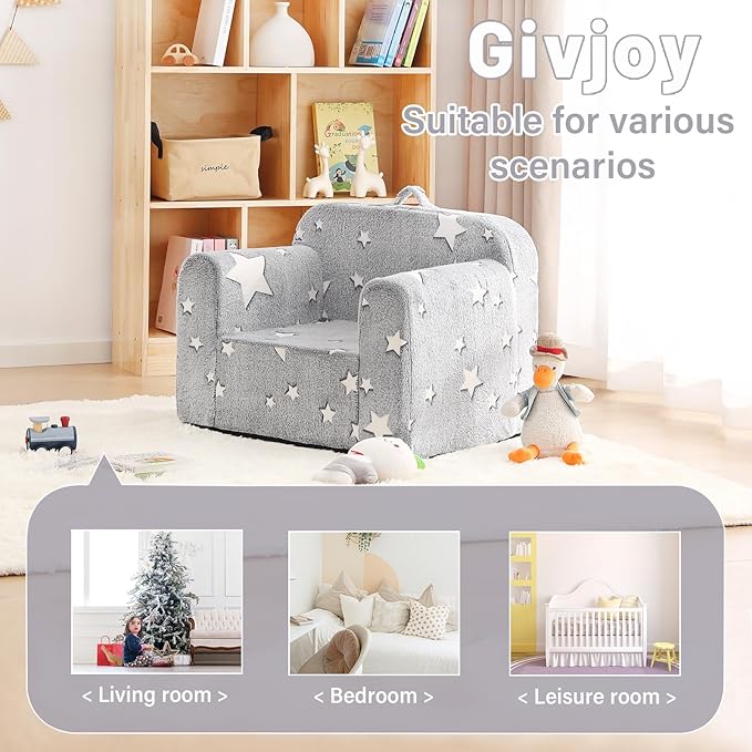 Toddler Chair Plush Kids Couch, Comfy Glow in The Dark Armchair with Removable and Washable Cover Carrying Handle Kids Sofa, Convertible Reading Chair Toddler Couch for Girls and Boys