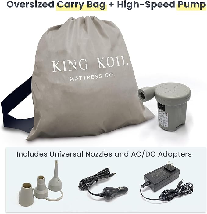 - YOUR TODDLER WILL THANK YOU: Make family travel more comfortable with the Toddler and Kids Travel Bed by King Koil, This inflatable kids’ bed provides a cozy sleep solution for kids during vacations, at babysitters, or on camping trips, ensuring a good night for everyone, Includes an oversized travel bag and electric pump with AC/DC adaptors for easy and convenient use