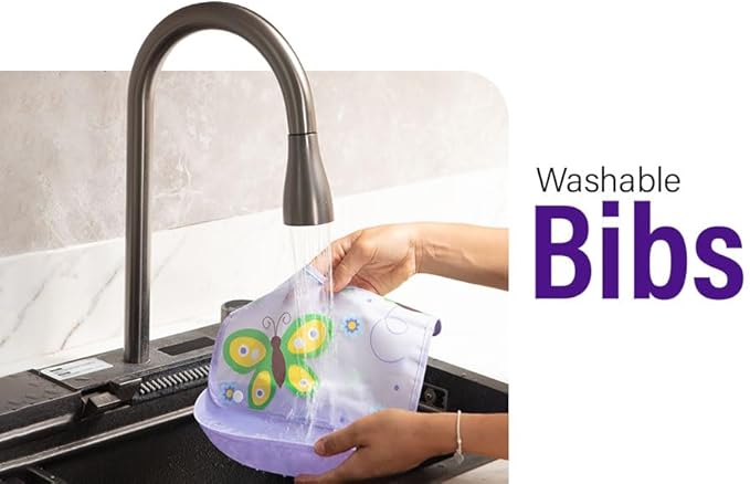 - Temperature Sensitive Utensils: Included with the bibs is a spoon and fork set that is temperature sensitive, ensuring safety in baby feeding. These feeding utensils are a thoughtful addition for those seeking safety in feeding babies.