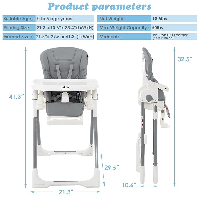 - Focus on Safety & Quality: INFANS High chair for eating, relaxing and playing in maximum comfort with a 5-Point safety harness. The scientific frame and stable pyramid structure prevent the toddler high chair from rolling over, ensuring safe use. Max child weight 50 pounds for children from 0 to 5 years old.