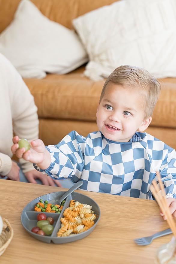 - TRAVEL BUDDY:The must-have baby feeding essentials for on-the-go parents! Our long sleeve waterproof smock bib (fits 6-24 months) is a versatile wipeable bibs with scratch-free closures and 360 degrees puree-proof protection.This bib with sleeves is perfect for plane or car meals, It folds flat in diaper bags,handles baby-led weaning messes and makes a great gender-neutral baby shower gift.Ideal for parents needing baby eating essentials on the go.