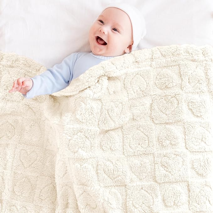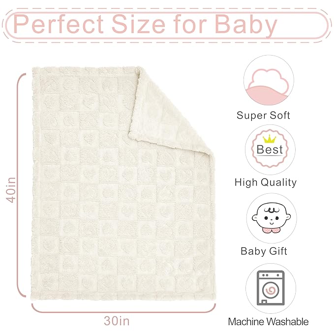 Yurhap Fleece Baby Blanket Heart Checkered Blanket, Ultra Soft Cozy Baby Blankets for Boys Girls, Fluffy Infant Toddler Newborn Receiving Blankets for Crib Stroller 30”×40” (Cream)