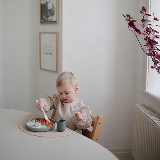 mushie Long Sleeve Baby Bib | Water Resistant Adjustable Fit for Ages 6-24 Months