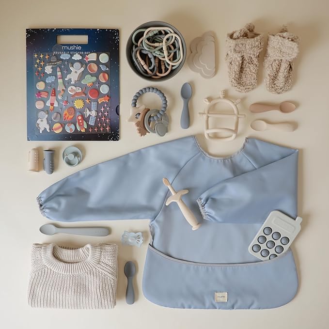 - Mess & Worry Free: Keep the kids clean at mealtimes, during art projects or in other messy moments with the mushie water resistant long sleeve bib.