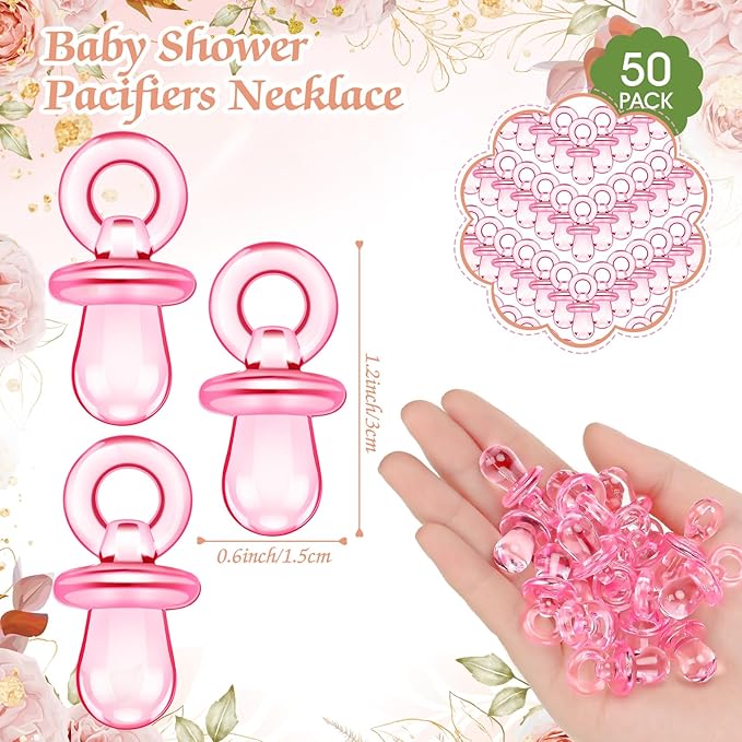 Thyle 51 Pcs Pacifier Hunt Baby Shower Games Include Hunt Sign and 50 Acrylic Pacifiers for Baby Shower Game Decoration Gift Sets Gender Reveal Party Decor(Flower)